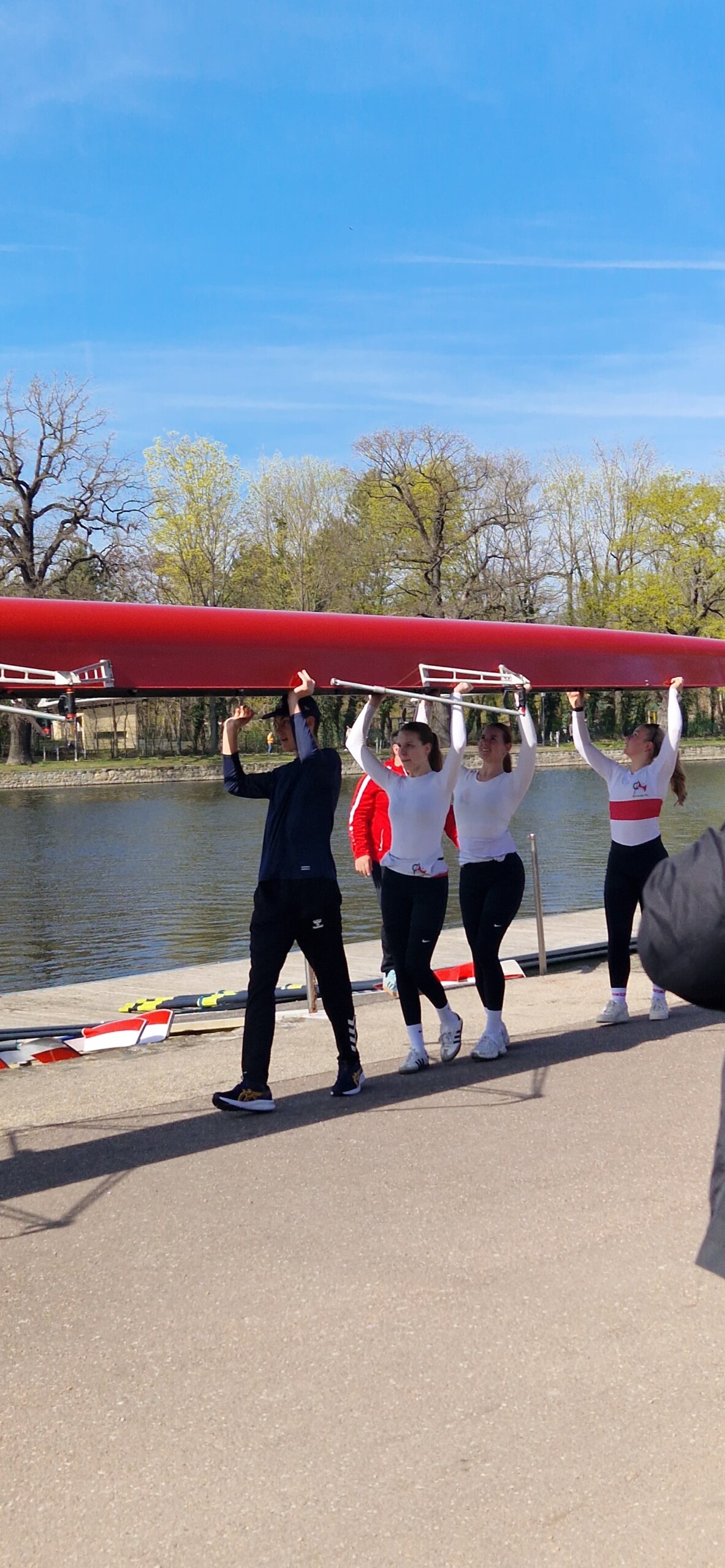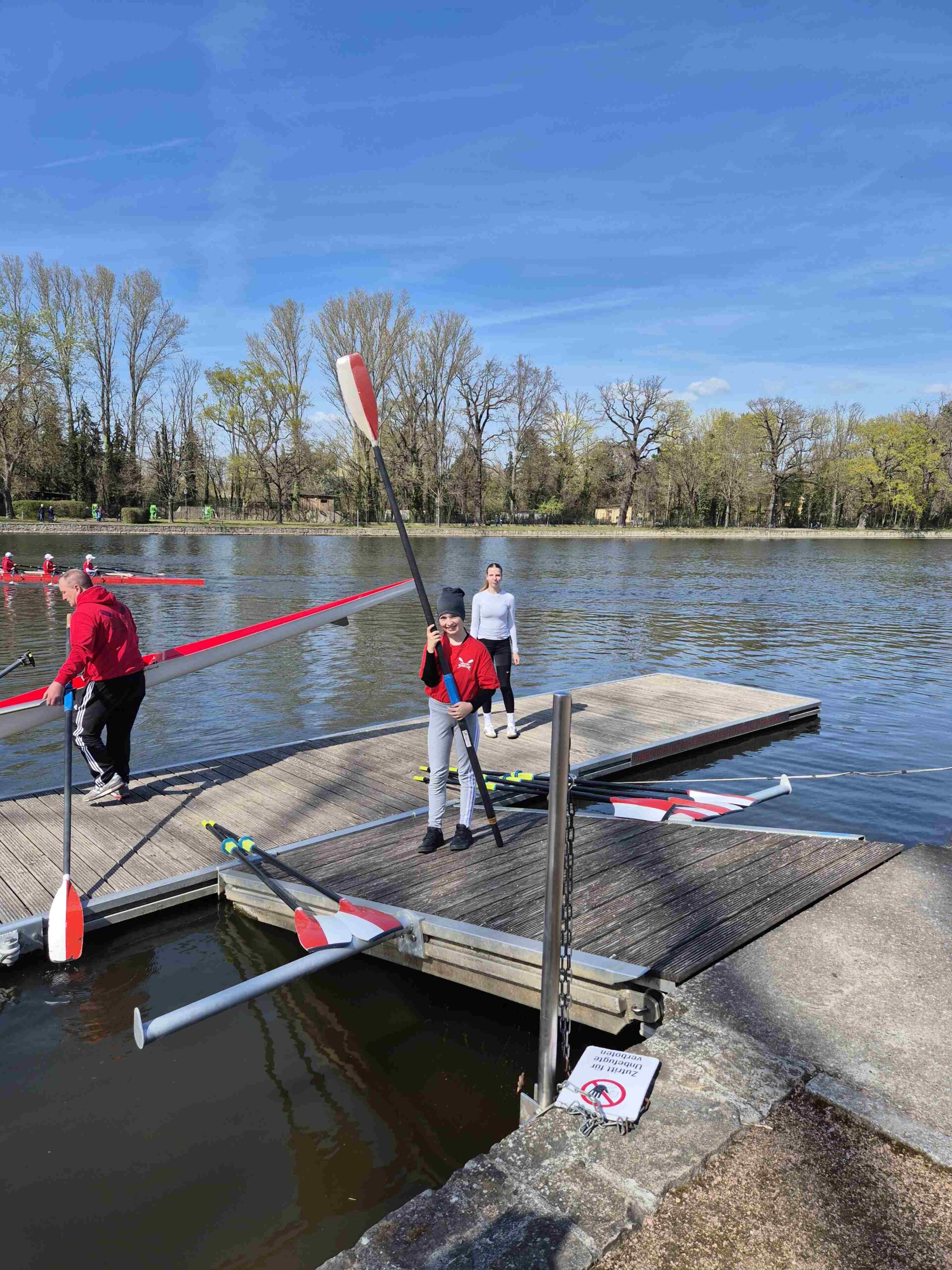 Schon Wochen vor dem Event begann die intensive Vorbereitung für Karolina und ihr Ruderteam im Vierer ohne, das aus Sportlerinnen aus Halle, Hamburg, Rostock und Magdeburg bestand. Einem Trainingslager in Breisach im Breisgau, das nebenbei dem deutsch-französischen Jugendaustausch diente, folgten zwei Trainingswochenenden in Hamburg. Die Mädchen trainierten mehrmals täglich auf dem Wasser, verbesserten Technik und Kondition und arbeiteten unermüdlich daran, als Einheit zu funktionieren. Auch abseits des Wassers wurde viel Wert auf Teambuilding gelegt, was insbesondere ihrer Trainerin, Charlotte Hebbelmann, zu verdanken ist. Wir hörten begeisterte Erzählungen – von einer Trainerin, die es schaffte, die Mädels zu Höchstleistungen zu motivieren, zugleich aber dafür sorgte, dass sich alle im Team wohlfühlten und gemeinsam wachsen konnten. Es entstand eine eingeschworene Gemeinschaft, was sich nicht nur an der Freude beim Training zeigte, sondern auch in der Vorfreude auf diesen besonderen Wettbewerb.