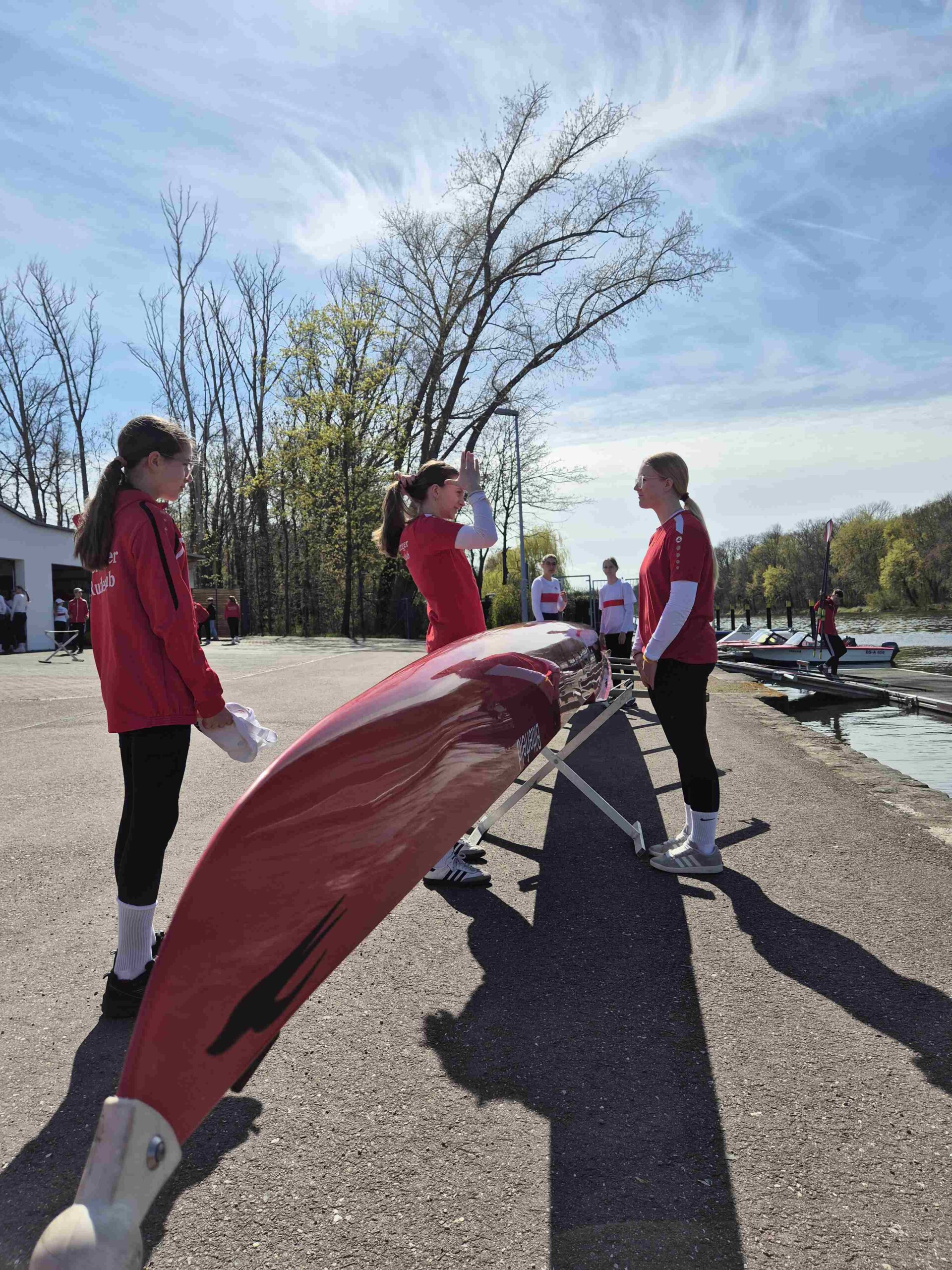 Für viele unserer jüngsten Sportlerinnen und Sportler (10 und 11 Jahre) war es der allererste Wettkampf. Das erste Mal die Boote abbauen, den Bootshänger beladen und vor Ort wieder alle Boote abladen und anbauen. All das gehört, neben den eigentlichen Rennen an einem Wettkampftag, zu einer Regattateilnahme und war für sie eine neue Erfahrung.